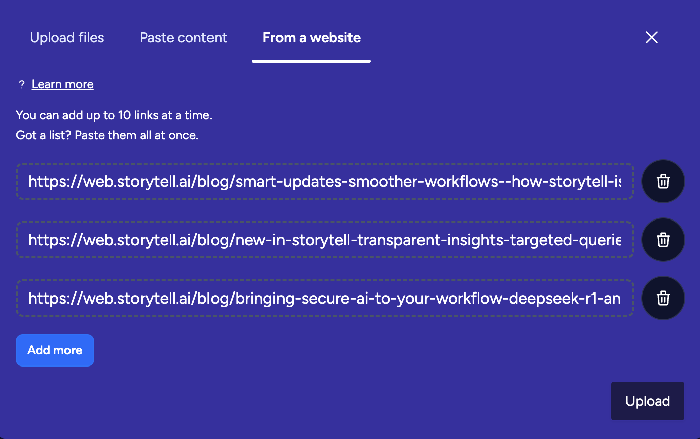 Storytell now informs users when uploaded files are still being processed and may not be included in AI responses. A clear notification system displays processing status and file counts, ensuring users understand when their analysis might be incomplete due to ongoing file ingestion.Who We Built This For
