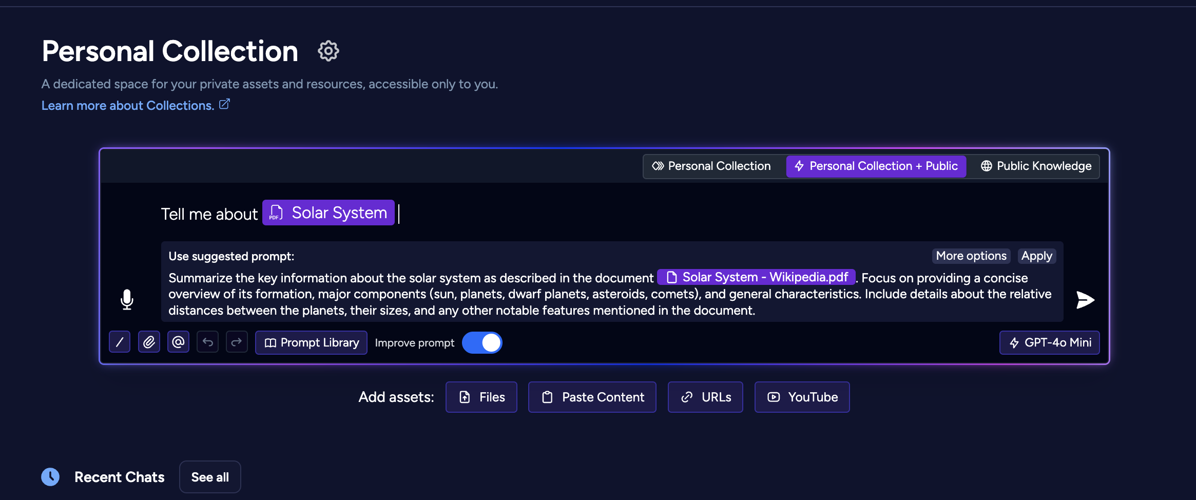- Prompt Library Tabs: Users can now browse by category: Favorites, Personal, Shared, or All Prompts for faster, more logical navigation.