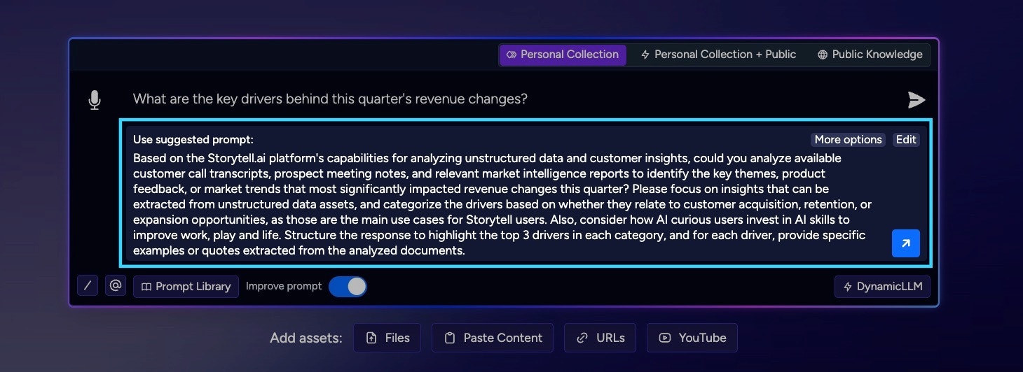 We built this feature for our end-users who rely on quick and accurate suggestions to enhance their productivity and creativity. Specifically, users who interact with Storytell for content creation, brainstorming ideas, or seeking assistance in writing will benefit from faster and more relevant suggestions. By optimizing the suggestion generation process, we cater to professionals, writers, and creative individuals who need efficient tools to support their workflow and enhance their output quality.Refining Prompt Transformation for Friendlier Interactions