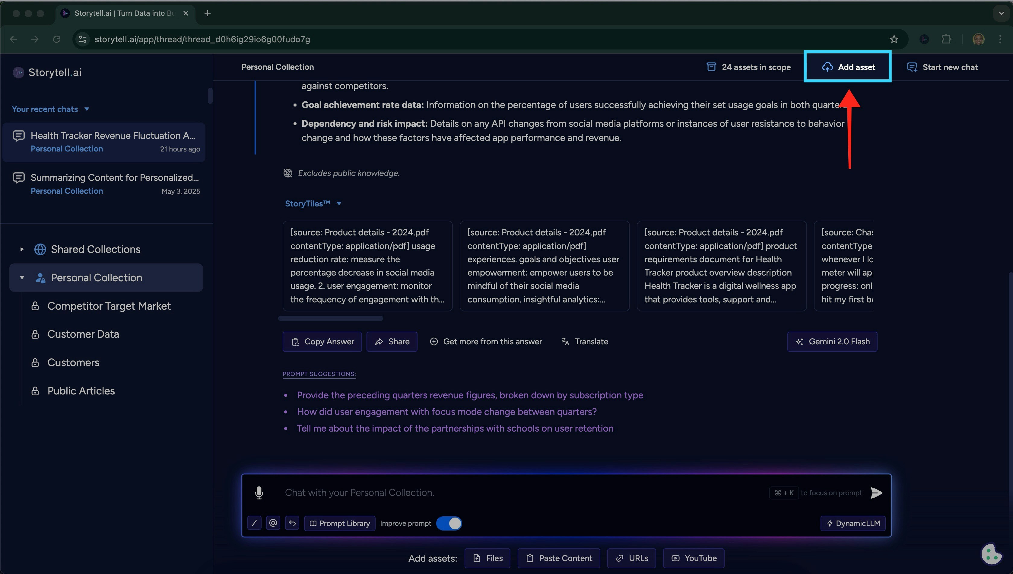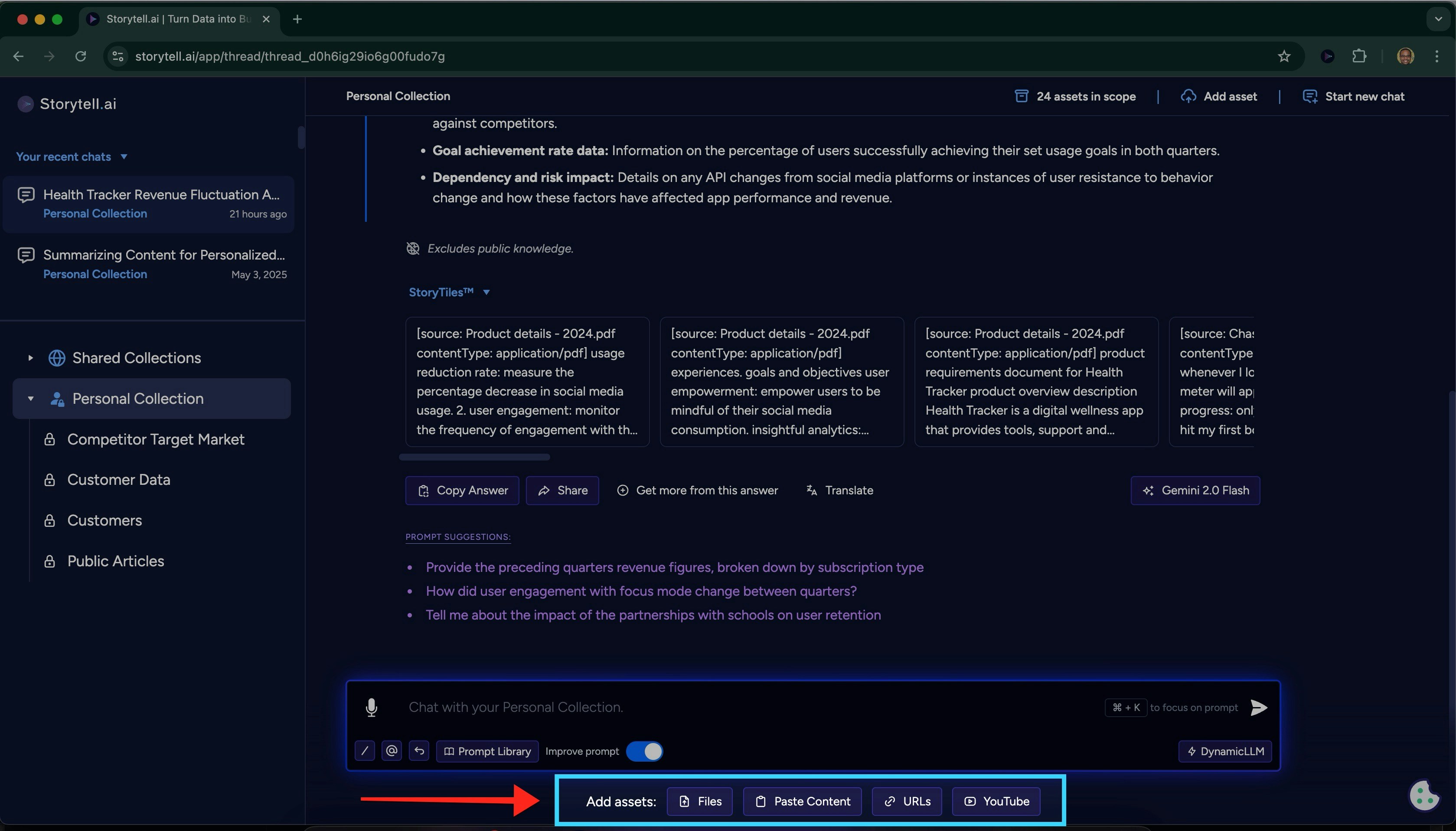 - Paste a YouTube link to upload and analyze the video content in Storytell.