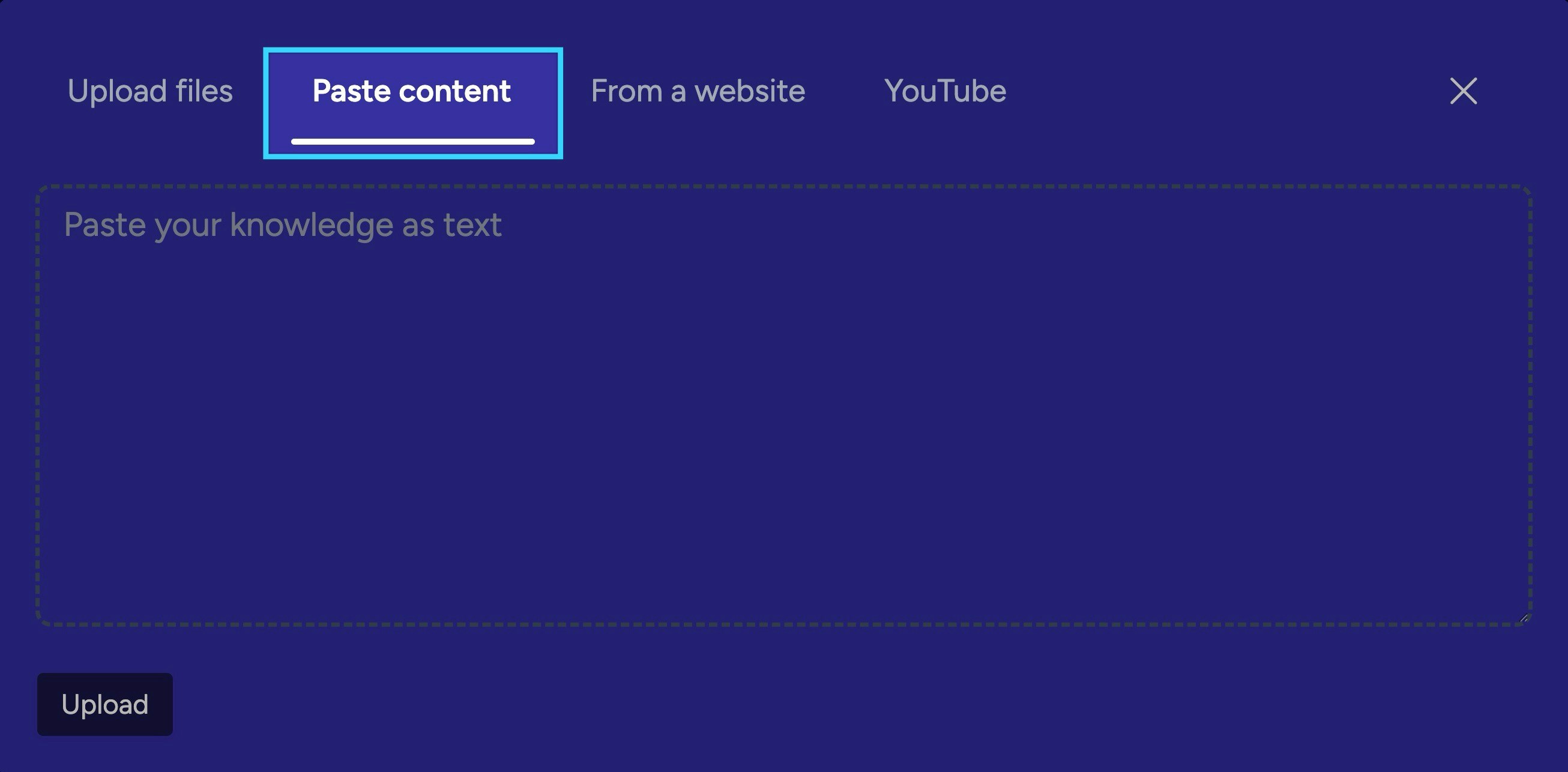 - Paste any block of text—short or long—directly into the upload window.